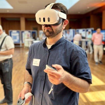 Noch digitaler wurde es an unseren Ständen zu den Projekten fuels und IMPACT. Im Projekt fuels („Future Learning Spaces“) gestalten wir Lernumgebungen, in denen physische und digitale Elemente mithilfe von 360°, AR und VR verschmelzen. Messebesucher*innen konnten zum einen mittels VR-Headset direkt in immersive Lehr- und Lernräume eintauchen, zum anderen konnten sie sich mit Future Learning Designs vertraut machen – didaktisch fundierte Best Practices aus der Hochschullehre.