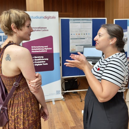 Am Donnerstag, den 26. Juni 2025, stand an der Goethe-Universität alles im Zeichen der Digitalisierung: Anlässlich des bundesweiten Digitaltags lud das Chief Information Office zur 3. Digitalmesse auf den Campus Westend ein. Die Besucher*innen konnten rund 35 IT- und Digitalprojekte kennenlernen und mit Projektverantwortlichen ins Gespräch kommen. Auch studiumdigitale war mit mehreren Angeboten rund um digitales Lehren und Lernen vertreten.