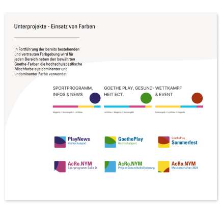 Wir sind sehr dankbar für das Vertrauen, das der Hochschulsport der Goethe-Universität in unser Design-Team gesetzt hat. Die Aufgabe bestand darin, aus bestehenden Designelementen eine neue Wort-Bild-Marke und ein erweitertes Konzept für die Gestaltung von digitalen, aber auch haptischen Elementen im Kontext des Hochschulsports zu entwickeln.