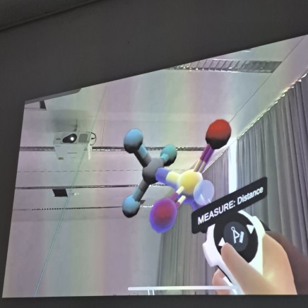 Nach einer kurzen technischen Einweisung durften die Teilnehmenden selbstständig die immersive Welt der Moleküle in Nanome erkunden oder eine wissenschaftliche Diskussion mit Marie Curie in Engage führen. Diese Erfahrung ermöglichte es ihnen, die Technologie aus erster Hand zu erleben. Zugleich können sie auch die vielfältigen Möglichkeiten entdecken, die VR für chemische Experimente bietet. Darüber hinaus haben wir verschiedene Lehrszenarien besprochen, um diese perspektivisch in den eigenen Lehrkontext zu übertragen.