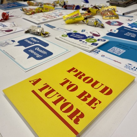 Ein weiterer Themenschwerpunkt bildete die Tutor*innenqualifizierung – unser überfachliches, praxisorientiertes Qualifizierungsprogramm für studentische Tutor*innen. Viele Besucher*innen informierten sich über das Berufsbild der Tutor*innen und die Inhalte des Programms. Außerdem freuen wir uns, dass unsere Dankes-Aktion ein Erfolg war, die dazu einlud, Anerkennung und Wertschätzung für die Arbeit der Tutor*innen auszudrücken. Erstsemester konnten dabei kleine Kompliment-Zettel mitnehmen, die sie im Verlauf des Semesters an ihre Tutor*innen weitergeben können.